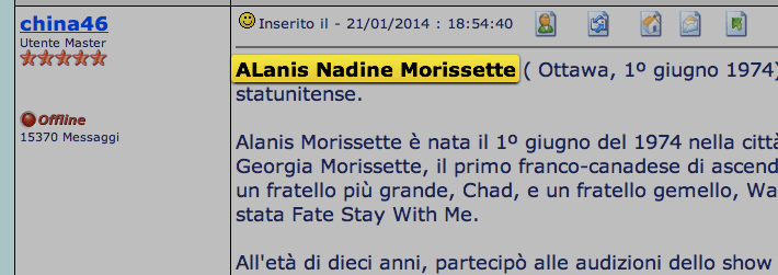 Alanis Morissette già c'è (messo da te) e cmq con AL già è stato messo da Dany |