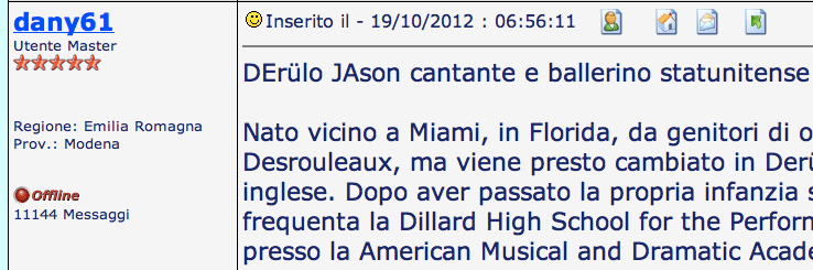 Vita privata Jason Derülo da più di due anni ha una relazione con la cantante Jordin Sparks e stanno decidendo di sposarsi. Insieme hanno pubblicato su You Tube il remix e duetto della canzone It Girl. Nel luglio 2012 Jason Derulo ha condotto con la compagnia della cantante Kelly Rowland un programma televisivo australiano Everybody Dance Now 2012 in cui, in veste di giudici di gara si esibivano dal vivo. Nel settembre 2012 Jason Derülo ha preso parte ad una campagna di beneficenza in Ruanda contro la fame in Africa. |