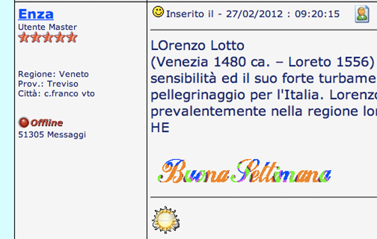 Lòtto, Lorenzo. - Pittore (Venezia 1480 circa - Loreto 1556 o 1557). Tra le massime espressioni del Rinascimento settentrionale nella sua fase matura, fu attivo inizialmente nel Veneto e, in seguito, soprattutto a Bergamo e nelle Marche. La sua produzione giovanile attesta le sue radici nella tradizione veneta, ma seppe ben presto raggiungere una cifra personale e autonoma; guardò anche ad artisti dell'Europa del Nord, quali A. Dürer, dai quali apprese il gusto per il dettaglio, l'osservazione realistica e il contenuto spirituale (Madonna e santi, Roma, Galleria Borghese). Assai significativa anche la sua ritrattistica (Ritratto del vescovo Bernardo de' Rossi, 1505, Napoli, Capodimonte), di intensa introspezione psicologica. Divenuto famoso in giovane età, fu dimenticato negli ultimi anni di attività nelle Marche; attività che solo a partire dalla fine dell'Ottocento la critica ha rivalutato. VITA E OPERE Dal 1503 L. risiedette a Treviso ove dipinse in S. Niccolò i due guerrieri ai lati del monumento Onigo; nello stesso anno fu chiamato a Recanati. Del 1505 è il Ritratto del vescovo di Treviso Bernardo de' Rossi, dove rivela una vena ritrattistica e cromatica personalissima. In queste prime opere è evidente la radice veneta della sua arte; nel S. Girolamo (1506, Louvre), pur risentendo ancora dell'arte del Giambellino, crea un paesaggio appena toccato da una luce calda e trattenuta dal colore. Al 1508 risale il magnifico polittico di Recanati (Pinacoteca Civica), che costituisce il momento conclusivo delle sue esperienze giovanili, e la gia citata Madonna e santi dove la conoscenza dell'opera di Dürer gli ha offerto la possibilità di una diversa e più intensa espressione della linea. Invitato a Roma da Giulio II (1509) vi rimase fino al 1512 circa, ma nulla rimane della sua attività romana. Tornato nelle Marche, denunciò l'influenza delle opere di Raffaello, come dimostrano il S. Vincenzo in gloria (Recanati, S. Domenico), la Deposizione (Iesi, Pinacoteca Civica), ecc. A Bergamo, ove si trattenne fino al 1525 pur facendo frequenti viaggi nelle Marche, manifestò la pienezza del proprio valore, come si nota nelle pale di S. Spirito e di S. Bernardino (1521), ammirevoli per la forte spiritualizzazione delle forme e il cromatismo magistralmente accordato a effetti luministici. Del 1523 è lo Sposalizio di s. Caterina (Accademia Carrara) e il Ritratto di due sposi (Madrid, Prado). Tra le opere bergamasche sono da ricordare gli affreschi in S. Michele in Pozzo Bianco e la cappella dei Suardi a Trescore (1524). Dopo il 1525, L. dimorò a Venezia o a Treviso, ma continuò a lavorare anche per le Marche e Bergamo. Accanto a Tiziano il suo colorismo si fece più scorrevole, mentre la sua immaginazione diventò sempre più tormentata e sensitiva. Tra i capolavori, da questo momento fino al definitivo ritorno nelle Marche (1549), ricordiamo: l'Assunzione della Pieve di Celana (1527); l'Annunciazione per S. Maria dei Mercanti, a Recanati; la Glorificazione di s. Nicola da Tolentino al Carmine di Venezia; la Disputa di s. Lucia (1530 circa, Iesi, Pinacoteca Civica); la Crocifissione (1527 circa, S. Maria in Telusiano, a Monte San Giusto); la Madonna del Rosario a Cingoli (1539, Raccolta Civica, già in S. Domenico); l'Assunta (1542, Sedrina, S. Giacomo). Della sua ultima produzione notevoli la pala dell'Assunta (1549, Ancona, S. Francesco alle Scale) e la Presentazione al Tempio (Loreto, Pinacoteca del Palazzo Apostolico, già nella Santa Casa).