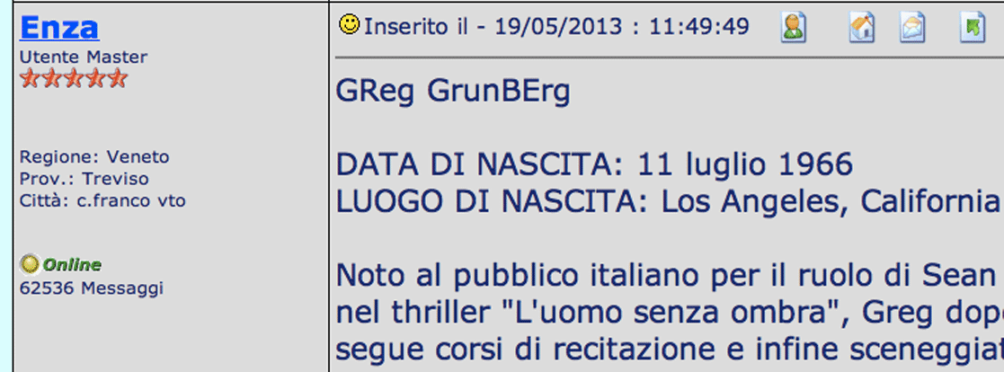 Nel 1988 ha partecipato al film giallo per bambini Operazione Pappagallo, opera prima del regista romano Marco Di Tillo, su sceneggiatura di Piero Chiambretti, Claudio Delle Fratte e lo stesso Di Tillo.