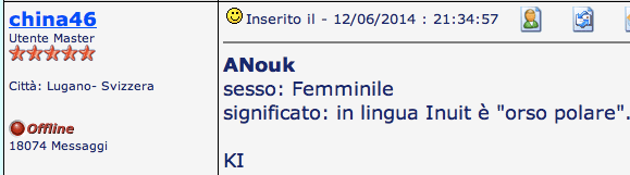 ANouk nome : femminile origine : Franco/Olandes- da Hanna significato:Grazia, graziosa