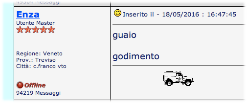 Inserito il - 19/05/2016 : 13:23:16  Mostra Profilo  Visita l'Homepage di dany61 Invia a dany61 un Messaggio Privato  Rispondi Quotando