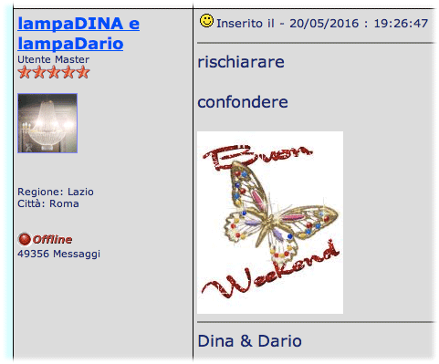 Inserito il - 18/05/2016 : 16:44:33  Mostra Profilo  Visita l'Homepage di lampaDINA e lampaDario Invia a lampaDINA e lampaDario un Messaggio Privato  Rispondi Quotando