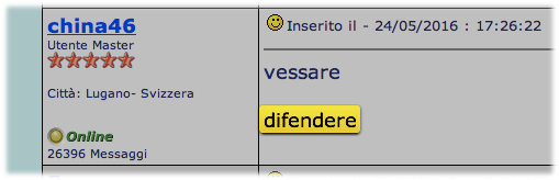 Inserito il - 13/06/2016 : 21:12:45  Mostra Profilo  Visita l'Homepage di china46 Invia a china46 un Messaggio Privato  Rispondi Quotando