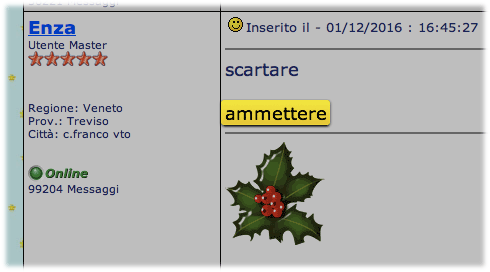 Inserito il - 21/12/2016 : 16:00:20  Mostra Profilo  Visita l'Homepage di Enza Invia a Enza un Messaggio Privato  Rispondi Quotando