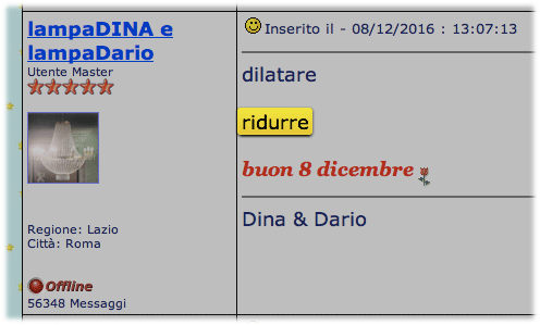Inserito il - 21/12/2016 : 18:09:13  Mostra Profilo  Visita l'Homepage di lampaDINA e lampaDario Invia a lampaDINA e lampaDario un Messaggio Privato  Rispondi Quotando