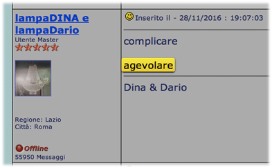 Inserito il - 29/11/2016 : 16:27:47  Mostra Profilo  Visita l'Homepage di lampaDINA e lampaDario Invia a lampaDINA e lampaDario un Messaggio Privato  Rispondi Quotando