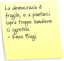 Qualche volta è accaduto che un granello di sabbia sollevato dal vento abbia fermato una macchina. Anche se ci fosse un miliardesimo di miliardesimo di probabilità che il granello, sollevato dal vento, vada a finire nel più delicato degli ingranaggi per arrestarne il movimento, la macchina che stiamo costruendo è troppo mostruosa perché non valga la pena di sfidare il destino. Norberto Bobbio |
