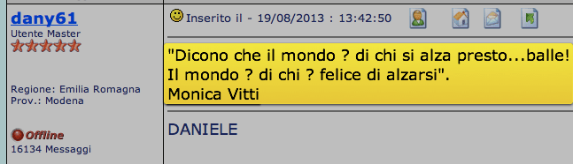 Dicono che il mondo è di chi si alza presto. Credo invece che sia di chi è felice di alzarsi. Monica Vitti