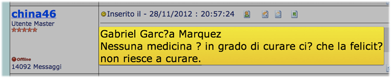 Non c'è medicina che guarisca quello che non guarisce la felicità. Gabriel García Márquez, |