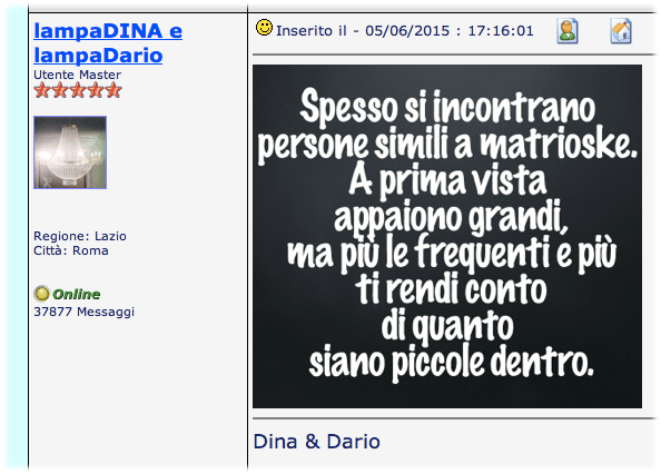Modificato da - lampaDINA e lampaDario in data 03/09/2016 06:03:17 |