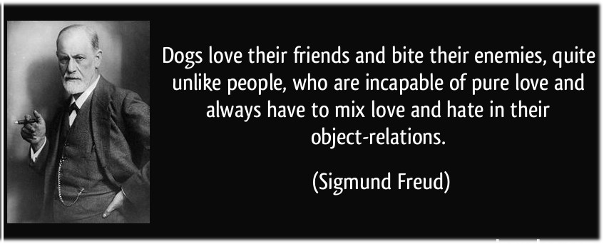 “I cani amano gli amici e mordono i nemici, a differenza degli esseri umani, che sono incapaci di amore puro e confondono l'amore con l'odio nelle loro relazioni.”
