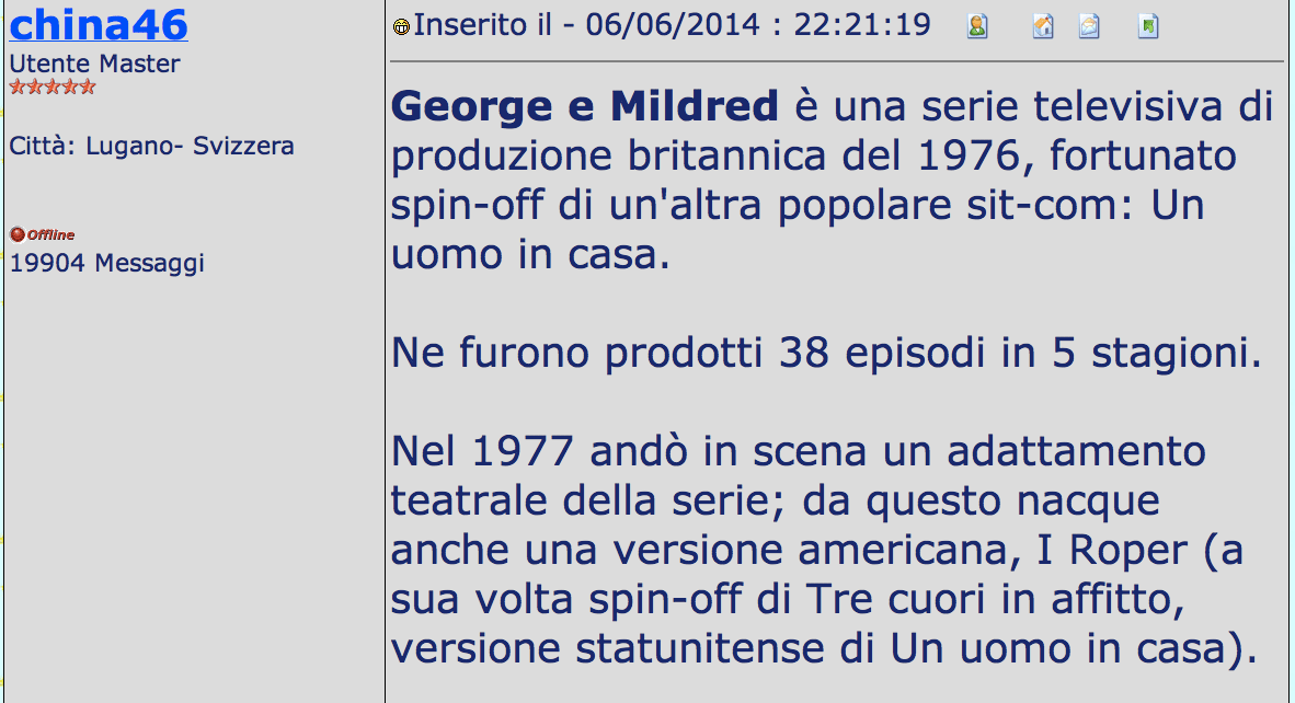 Nel 1980 venne prodotto il film per la TV George e Mildred, trasmesso in Italia il 1º gennaio 1983.