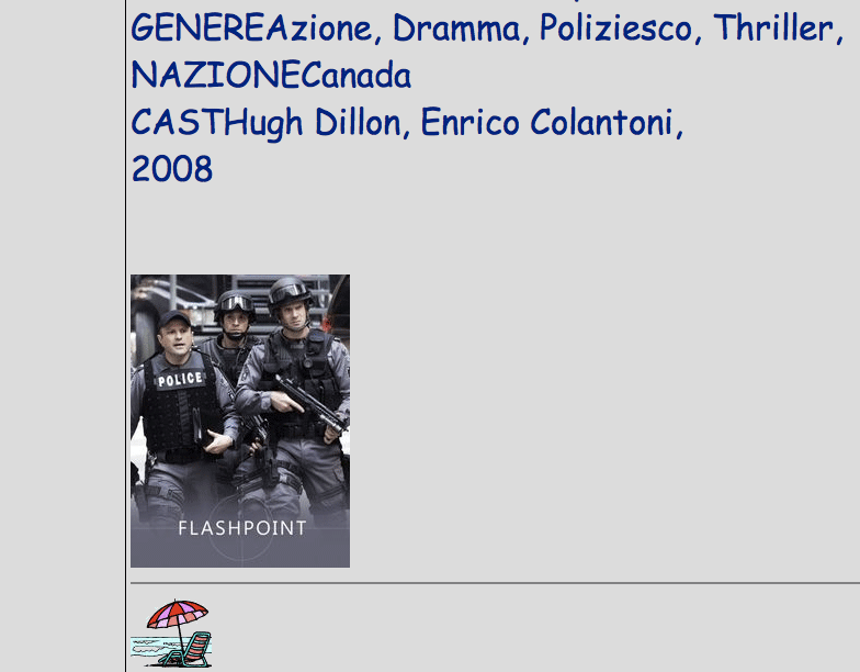 TITOLO ORIGINALE Flashpoint GENEREAzione, Dramma, Poliziesco, Thriller, NAZIONECanada CASTHugh Dillon, Enrico Colantoni, 2008