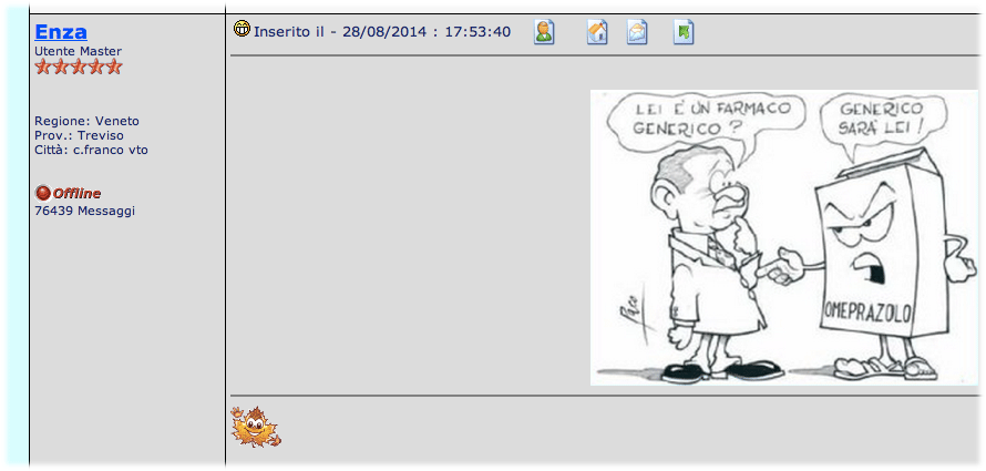— Lasciamo perdere gli effetti secondari, signor Bianchi: quella medicina ha curato o no il suo mal di testa? |