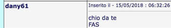Inserito il - 05/10/2018 : 07:20:51  Mostra Profilo  Visita l'Homepage di dany61 Invia a dany61 un Messaggio Privato  Rispondi Quotando