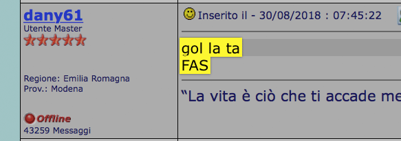 Inserito il - 03/10/2018 : 16:45:18  Mostra Profilo  Visita l'Homepage di dany61 Invia a dany61 un Messaggio Privato  Rispondi Quotando
