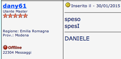 Inserito il - 17/02/2015 : 14:50:23  Mostra Profilo  Visita l'Homepage di dany61 Invia a dany61 un Messaggio Privato  Rispondi Quotando