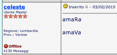Inserito il - 14/02/2015 : 18:50:20  Mostra Profilo  Visita l'Homepage di lampaDINA e lampaDario Invia a lampaDINA e lampaDario un Messaggio Privato  Rispondi Quotando