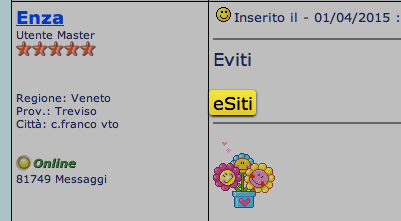 Inserito il - 17/04/2015 : 15:06:55  Mostra Profilo  Visita l'Homepage di celeste Invia a celeste un Messaggio Privato  Rispondi Quotando
