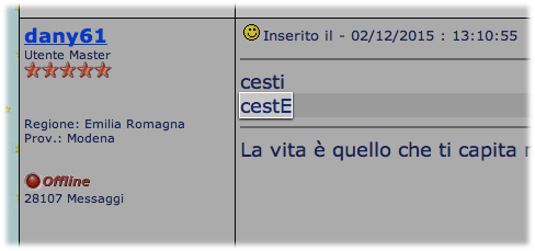 Inserito il - 15/12/2015 : 14:45:36  Mostra Profilo  Visita l'Homepage di dany61 Invia a dany61 un Messaggio Privato  Rispondi Quotando