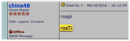Inserito il - 22/10/2016 : 20:38:17  Mostra Profilo  Visita l'Homepage di china46 Invia a china46 un Messaggio Privato  Rispondi Quotando