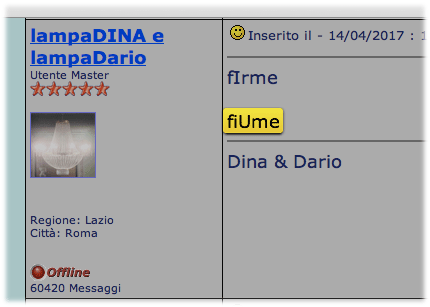 Inserito il - 27/04/2017 : 18:16:06  Mostra Profilo  Visita l'Homepage di lampaDINA e lampaDario Invia a lampaDINA e lampaDario un Messaggio Privato  Rispondi Quotando
