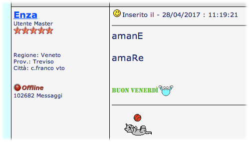 Inserito il - 01/05/2017 : 20:04:46  Mostra Profilo  Visita l'Homepage di Enza Invia a Enza un Messaggio Privato  Rispondi Quotando