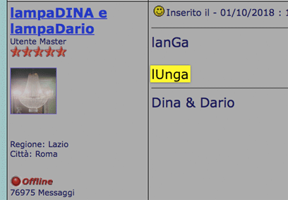 Inserito il - 02/10/2018 : 12:00:04  Mostra Profilo  Visita l'Homepage di lampaDINA e lampaDario Invia a lampaDINA e lampaDario un Messaggio Privato  Rispondi Quotando