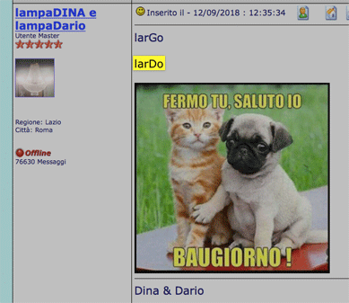Inserito il - 09/09/2018 : 11:06:10  Mostra Profilo  Visita l'Homepage di lampaDINA e lampaDario Invia a lampaDINA e lampaDario un Messaggio Privato  Rispondi Quotando