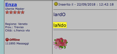 Inserito il - 03/10/2018 : 16:17:06  Mostra Profilo  Visita l'Homepage di lampaDINA e lampaDario Invia a lampaDINA e lampaDario un Messaggio Privato  Rispondi Quotando