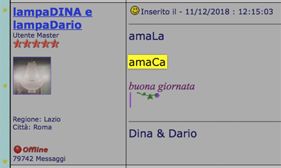 Inserito il - 25/11/2018 : 10:11:49  Mostra Profilo  Visita l'Homepage di lampaDINA e lampaDario Invia a lampaDINA e lampaDario un Messaggio Privato  Rispondi Quotando