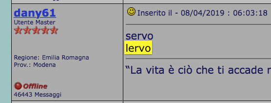 Regione: Emilia Romagna Prov.: Modena 49694 Messaggi