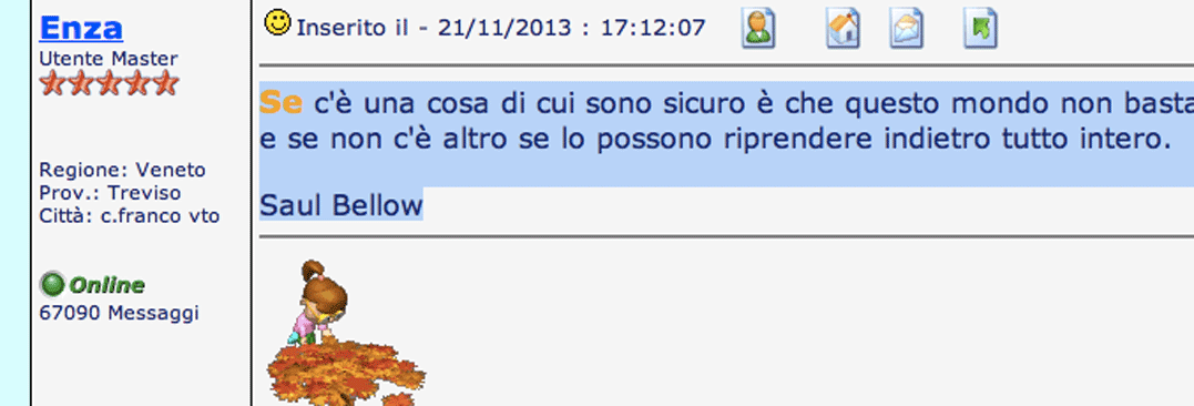 Se c'è una cosa di cui sono sicuro è che questo mondo non basta, e se non c'è altro se lo possono riprendere indietro tutto intero. Saul Bellow |